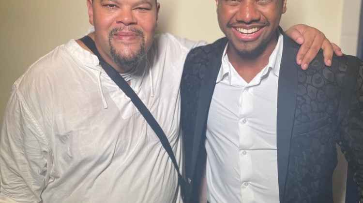 Babu Santana posa ao lado de Davi em camarim — Foto: Fernanda Almeida/gshow